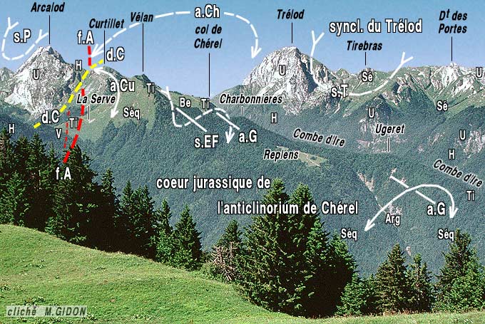 a.Cu = anticlinal du Curtillet (et du Vélan) ; s.EF = synclinal de l'Eau Froide ; a.G = anticlinal de Giez