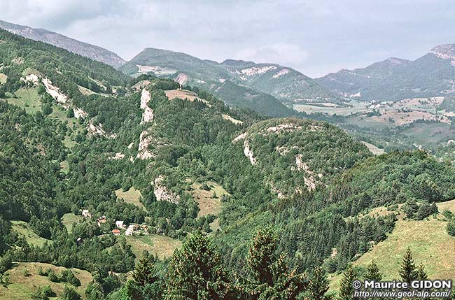 - Une zone d'étirement de flanc inverse de pli-faille, particulièrement accessible, est observable à l'échelle de l'affleurement le long de la route sylvo-pastorale du Charmant Som.