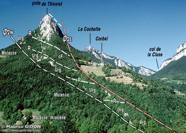 - Enfin un pli-faille miniature (de taille décamétrique) s'observe dans les gorges du Guiers Mort, dans l'entaille de la route, quelques dizaines de mètres en aval du Pont Saint-Pierre.