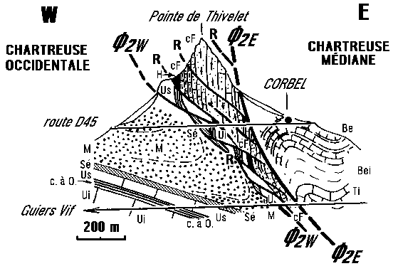 En Chartreuse il s'avère en outre que l'étirement n'affecte pas la zone concernée de façon homogène mais qu'il est intervenu par le jeu de multiples fractures (il est "discontinu").