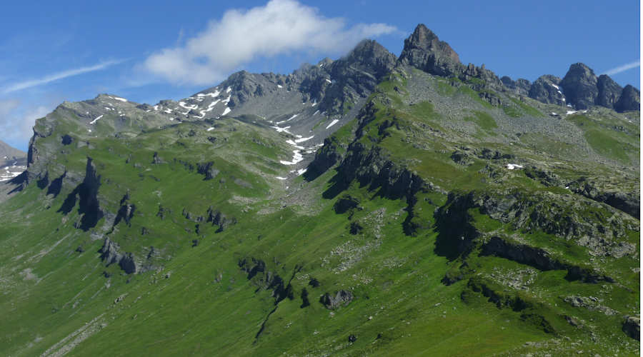 Vue L vers le nord-ouest vers le vallon de Beaupré à droite et le col des Veys à gauche.