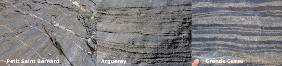 Leur faciès de calcschiste à petits interlits gréseux ressemble fortement au faciès des grabens liasiques de la Vanoise : Grande Casse - Grande Motte et Dent Parachée. Ils ressemblent aussi au faciès de la Grande Moendaz plus au sud (Subbriançonnais de R.Barbier).