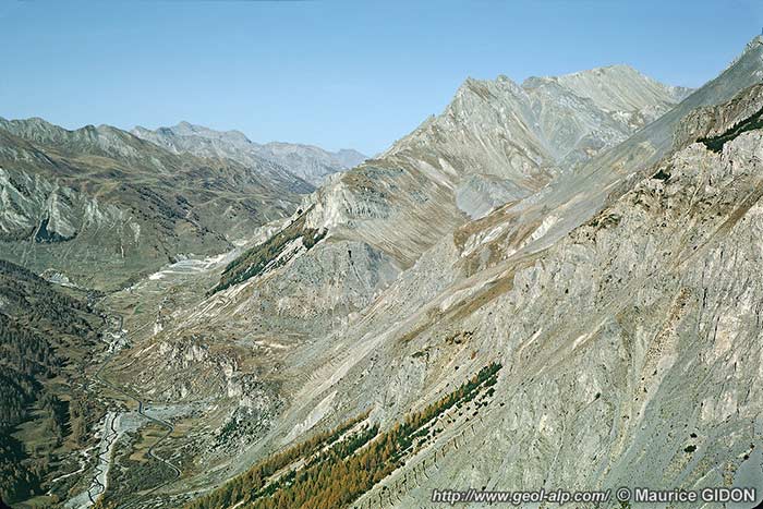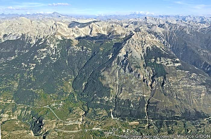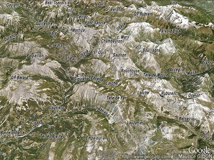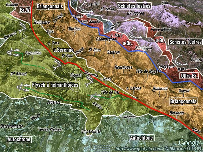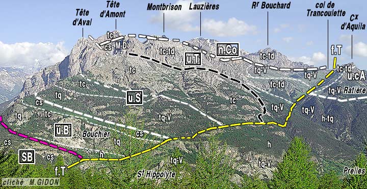 un dispositif où la nappe de flysch à Helminthoïdes du Parpaillon se superpose presque directement à la couverture autochtone (d'ailleurs fortement réduite) de l'extrémité NW du Mercantour.