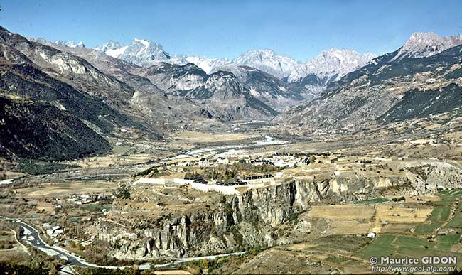 1/ La faille de la Durance s'observe de façon manifeste à la latitude du Briançonnais méridional, immédiatement au nord du confluent de cette rivière avec le Guil. Il s'agit d'un couloir fracturé, qui détermine le tracé de la vallée de la Durance depuis son coude, au niveau de Mont-Dauphin jusqu'en amont de La-Roche-de-Rame, et lui confère la particularité d'être orientée presque N-S (plutôt N 160).