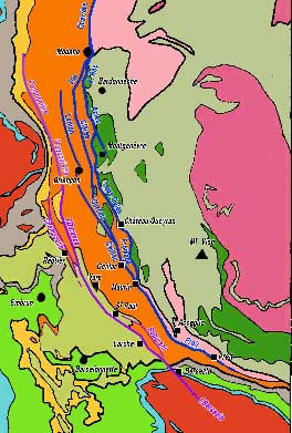 à l'allongement de la zone, donc à la plupart de ses plis et aux tracés les plus communs de