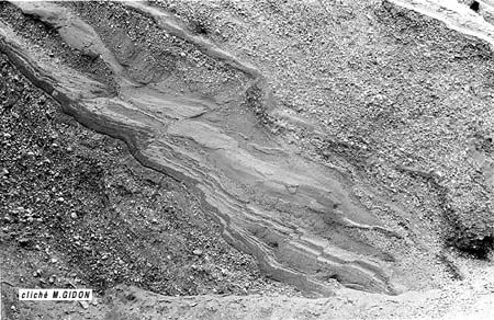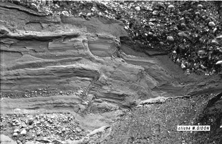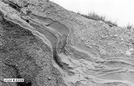 Le front de taille y montrait, avant qu'il ne se dégrade, d'intéressants détails de la constitution et de la géométrie des couches alluviales.