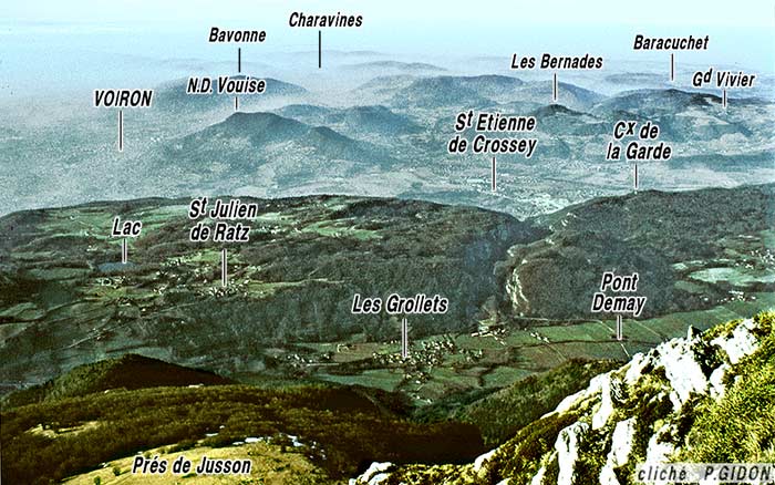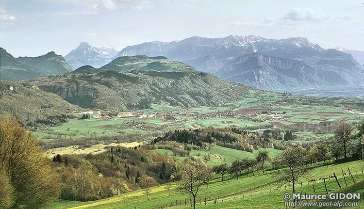 ![]() La dépression suspendue de Saint-Étienne-de-Crossey, vue du nord, depuis le hameau des Chambures (Grand Vivier) |