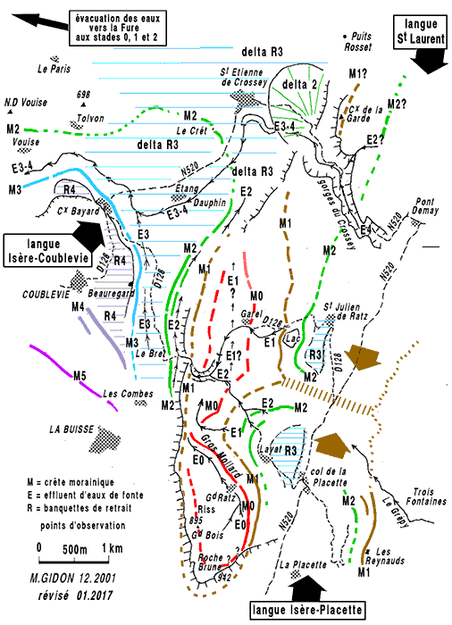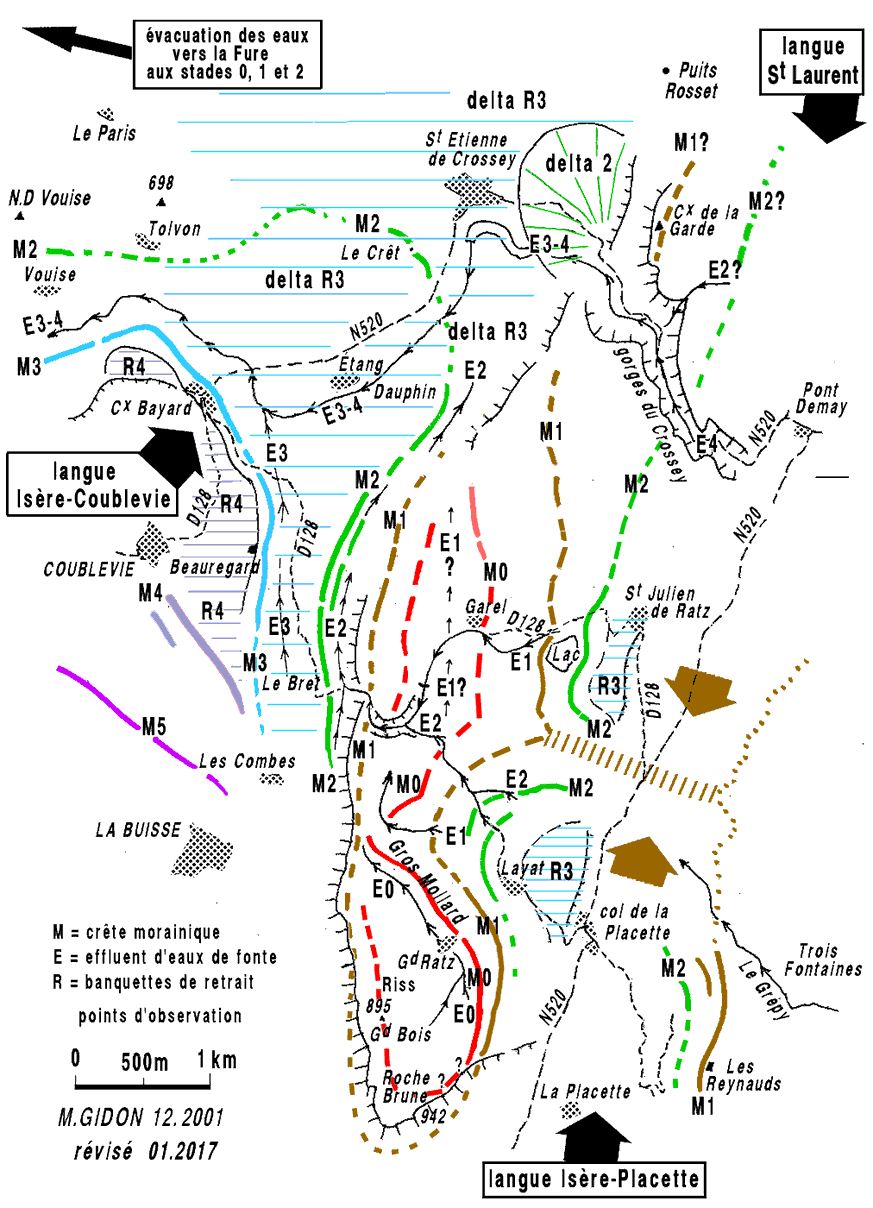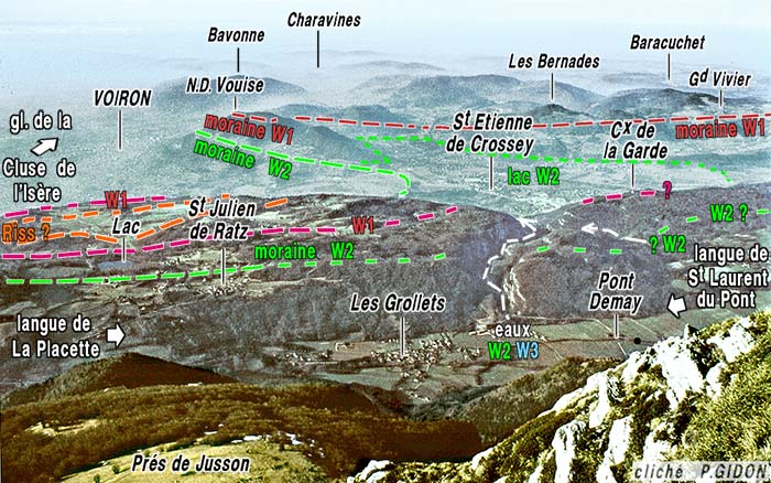 pour un contexte plus large voir la carte schématique des glaciations du Voironnais |