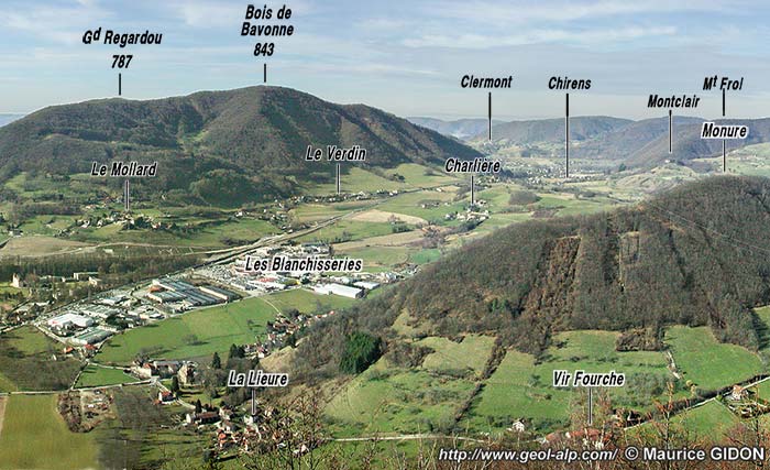 cartes géologiques au 1/50.000° à consulter : feuille "Voiron"