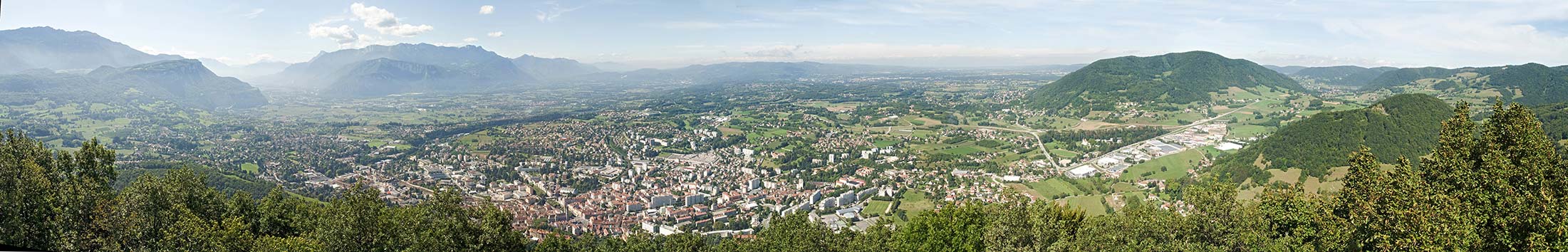 La ville de Voiron, vue plongeante en direction du SW depuis le sommet de la montagne de Vouise.