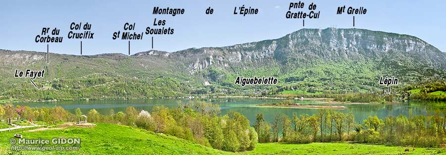 coeur du synclinal de Novalaise (en effet le déversoir du lac, situé à son extrémité occidentale, entaille le bedrock du flanc oriental de l'anticlinal du Mont Tournier).
