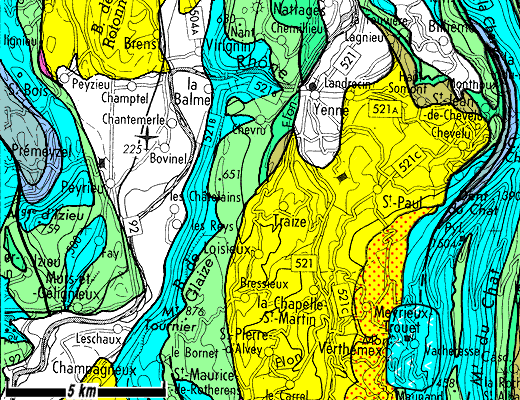 cartes géologiques au 1/50.000° à consulter : feuilles La-Tour-du-Pin et Chambéry