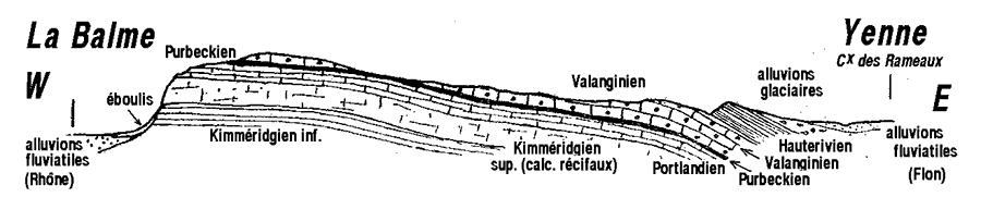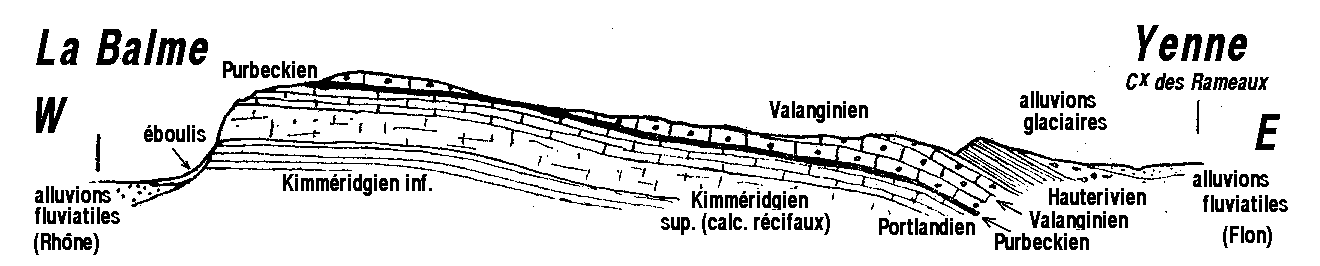 dominant le village de La Balme on remarque que les bancs portlandiens dessinent des anneaux concentriques : cela est dû à la disposition horizontale de leurs couches,