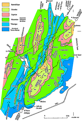 chevauchement du Margériaz ; ØV = chevauchement du Veyrier.