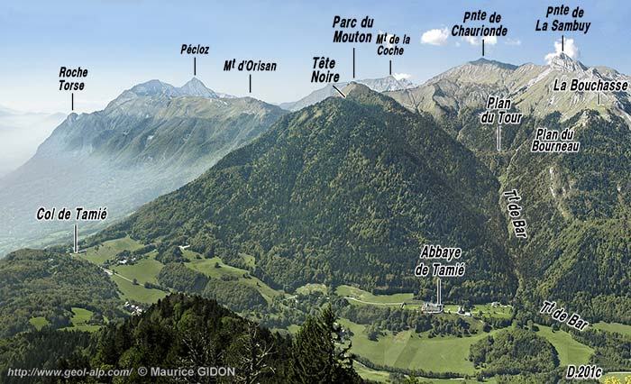 Le versant occidental de la vallée de Tamié est constitué, au niveau du col, par des pentes boisées qui s'élèvent en direction du sommet du Parc du Mouton : jusqu'à La Tête Noire elles sont formées par la couches de l'Hauterivien du flanc oriental de l'anticlinal d'Orisan qui ont un pendage à peine plus fort que celui du versant ; au delà la crête est formée par leur soubassement stratigraphique normal de marnes de Narbonne qui est largement affouillé du côté nord par les ravins en patte d'oie qui sont drainés par le Torrent de Bar.