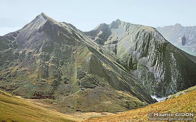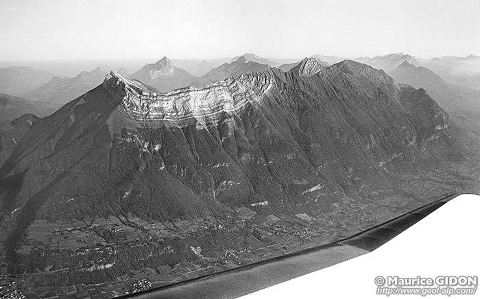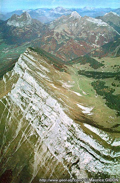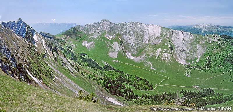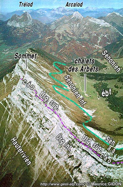 La partie basse du revers de ce crêt d'Urgonien est en effet garnie par des calcaires sénoniens dont les affleurements arment des chevrons qui s'élèvent sur le versant en forme d'arc boutants ; ces derniers séparent des petites combes dont le modelé et l'absence de restes d'éboulements à leur extrémité aval trahit clairement qu'elles ont dû être aménagées par des langues glaciaires locales.