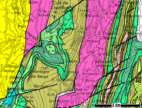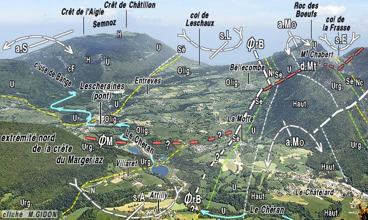 Le prolongement méridional du synclinal de Leschaux et du chevauchement du Roc des Bœufs sont examinées à la page "Aillons".