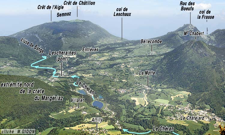À l'ouest du chaînon du Roc des Bœufs s'ouvre le val du col de Leschaux. Ce très large sillon, longitudinal par rapport aux plis, met en communication deux dépressions l'une et l'autre au contraire transversales aux plis, la cuvette du lac d'Annecy et la vallée du Chéran (voir la page "Semnoz") .
