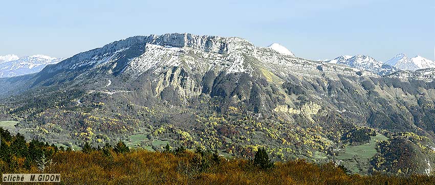 En direction du nord la grande dalle monoclinale du Margériaz se poursuit de façon quasiment plane et rectiligne presque jusqu'à la vallée du Chéran, les abrupts de son crêt tombant sur le vallon de Saint-François et son revers constituant le versant occidental de la vallée des Aillons.
