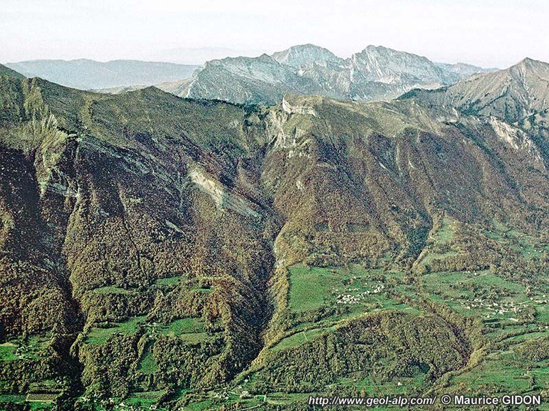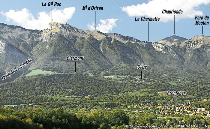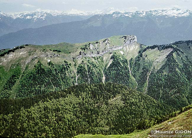 C'est certainement la mise à nu des couches tithoniques, qui, du fait de leur plus grande résistance à l'érosion, a guidé ici l'orientation du rebord subalpin pour la rendre presque parallèle à l'axe de ces plis (donc presque N-S), alors que sa direction moyenne, parallèle à la chaîne de Belledonne (c'est-à-dire NE-SW) les fait lui couper ailleurs bien plus transversalement. |