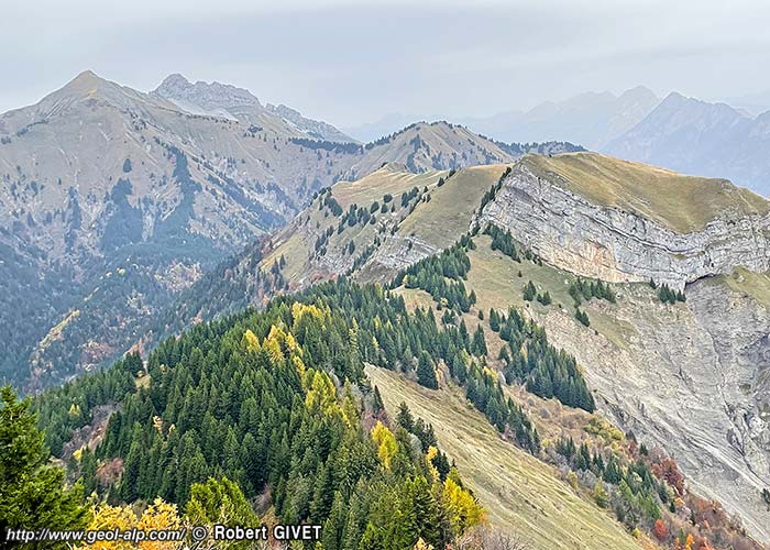 On y voit ainsi se succèder des plis qui ne sont en fait que des replis empilés du flanc oriental du grand synclinorium du Pécloz : c'est pour cette raison qu'ils sont couchés vers l'ouest.