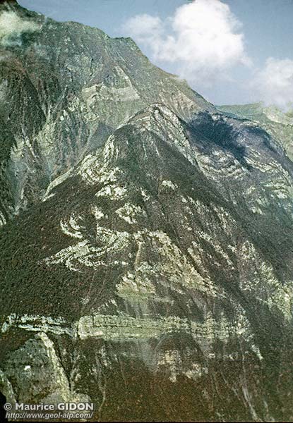 b) dans le Tithonique, les plis parasites* de la Roche Torse, qui affectent le flanc oriental de