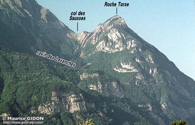 Plus au NE encore, au droit du Mont d'Armenaz, la profonde entaille du grand ravin des Lavanches perce ces niveaux crétacés et donne une coupe naturelle plus orthogonale au flanc ouest de l'ondulation anticlinale d'Armenaz : le contrefort rocheux détaché de sa rive nord, qui est pertinemment dénommé la Roche Torse, montre de façon spectaculaire les replis que dessinent les calcaires massifs du Tithonique du flanc ouest de ce pli.