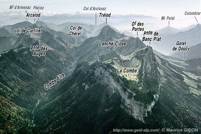 Mieux encore qu'à la latitude du Trélod la structure synclinale dirige le relief, lui conférant un caractère accusé de val synclinal perché. Ceci est surtout le fait des replis qui affectent, plus au sud le versant occidental du Trélod : en effet ils prennent, au nord de la Dent des Portes et du ravin du Planay, une ampleur et une influence sur le relief qui sont beaucoup plus accusées qu'au sud.