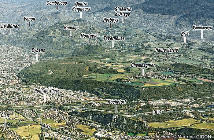 confluent avec la Romanche. Dans ce secteur, entre Eybens au nord et Vif au sud, pratiquement tout le bedrock mésozoïque a été arasé par l'action des glaciers puis des cours d'eau au cours de l'histoire quaternaire de la région.