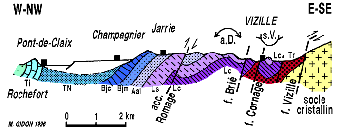 ![]() Coupe des collines bordières de Belledonne, sur la transversale de Vizille |