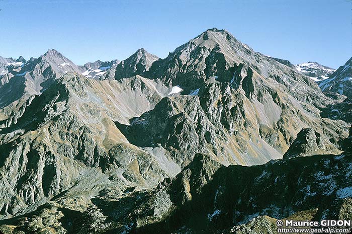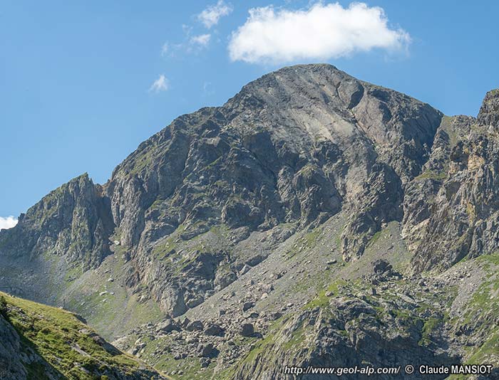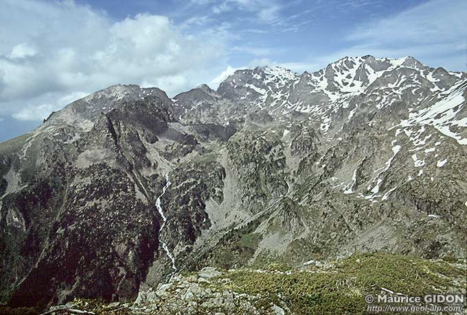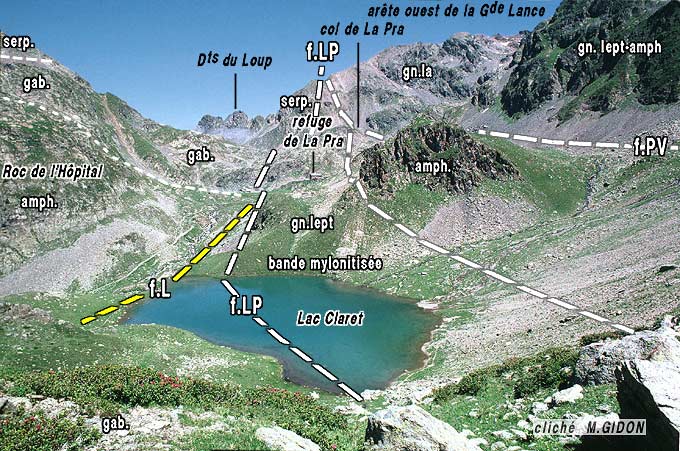 - la branche médiane toujours bordée de mylonites représente sans doute la cassure principale ; elle se poursuit par le lac David et franchit la crête de Jasse Bralard peu à l'est du col de la Petite Vaudaine