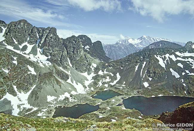 Entre ce chaînon et la Croix de Chamrousse le dispositif synforme qui affecte l'Ophiolite de Chamrousse (voir la page "Chamrousse") est évidé par la cuvette des Lacs Robert, qui est suspendue en rive gauche du Doménon : le lit du torrent entaille uniquement les amphibolites du flanc inverse de ce pli, et les gabbros de son cœur ne sont atteints que plus haut, au Plan des Vernes, par le chemin qui monte en rive gauche vers les lacs Robert.