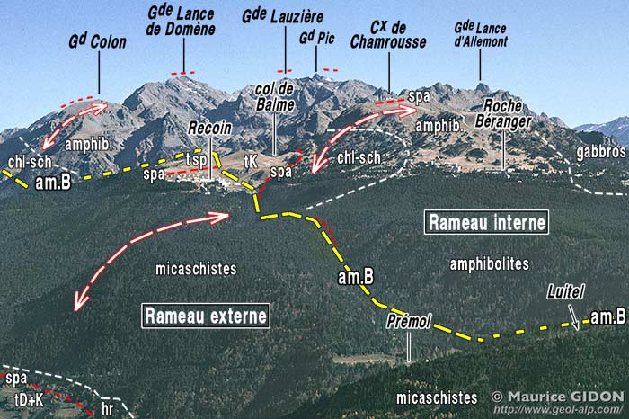 d'ensemble sur le massif de Belledonne). Le plus souvent les amphibolites s'engagent en dessous des autres