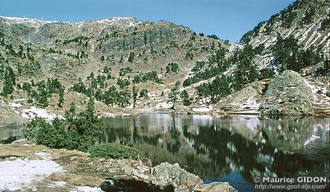 C'est plus précisément dans les serpentinites du coeur de cette synforme des Lacs Achard qu'est évidée la dépression qui