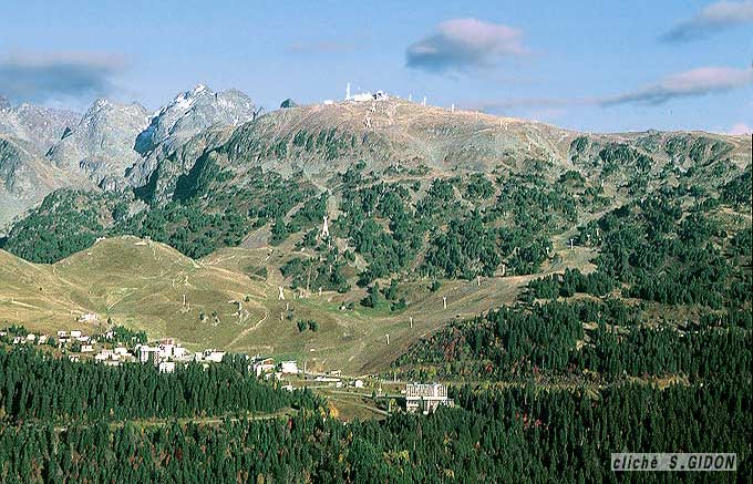 Le domaine skiable de la station de Chamrousse se développe sur des pentes relativement planes et peu inclinées, très différentes en cela des crêtes, profondément déchiquetées et entaillées de profonds vallons, qui forment, plus au nord, le reste de la chaîne.