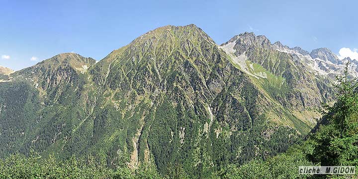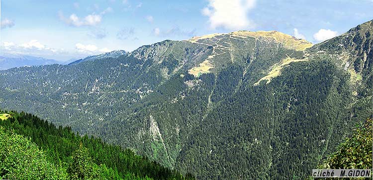 ![]() La cuvette de Super-Collet, vue du NE, depuis les replats entre col de l'Occiput et alpages des Plagnes. |