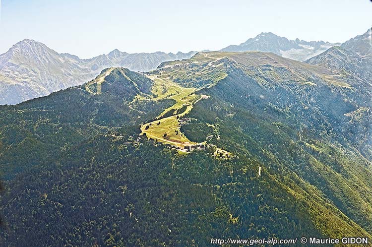Ce chapeau est conservé là, à la voûte de l'anticlinal que dessine la surface de la pénéplaine anté-triasique, à la faveur de son abaissement, de 300 à 400 m, par rapport au socle cristallin qui affleure plus au sud est sur la crête des Plagnes par la faille de l'Occiput (qui détermine le col de ce nom).