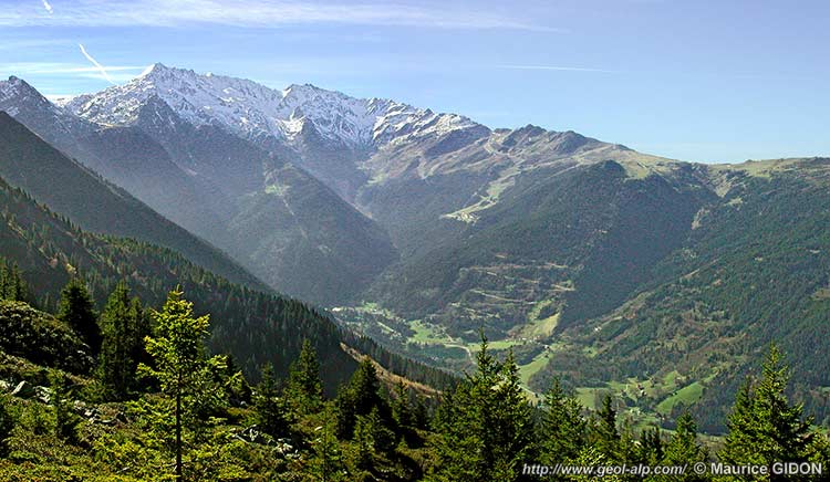 Il faut pourtant noter que le décalage que l'accident de Fond de France inflige aux bandes de schistes cristallins de la rive est du Bréda n'est à cet endroit que de l'ordre d'un kilomètre, alors que le décalage de l'accident médian sur l'autre rive, entre la vallée du Bréda et la crête de partage des eaux avec le Grésivaudan, est proche de 3 km ...