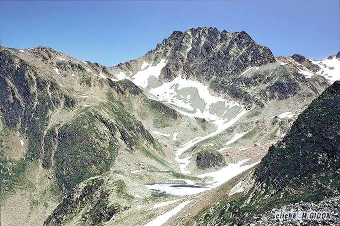 ![]() La partie haute du vallon de la Grande Valloire vue du sud depuis la moraine du glacier d'Arguille |
