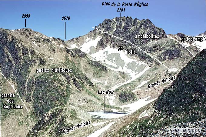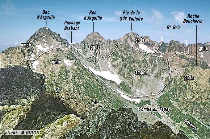 Ce sont ces gneiss, notamment ceux les plus amphiboliques, qui forment les crêtes de la ligne de partage des eaux, notamment les dalles pentées vers l'ouest du pic de la Grande Valloire et le Bec d'Arguille, ainsi que la partie supérieure du chaînon secondaire du Roc d'Arguille.