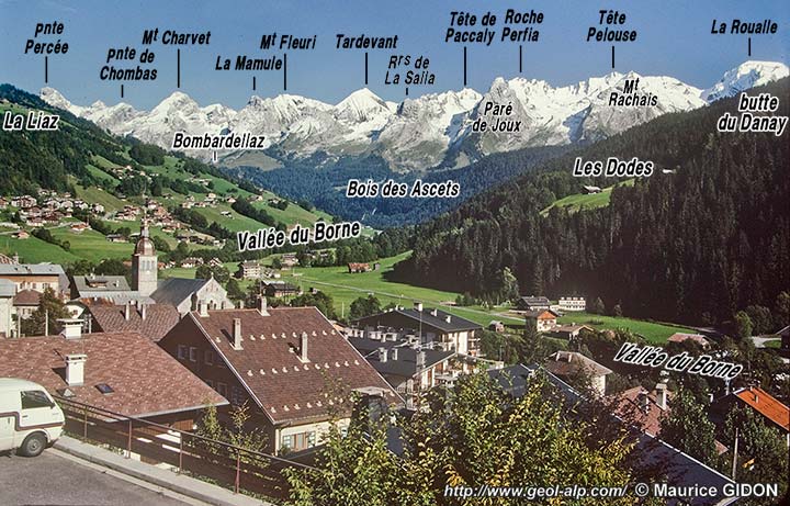 Ces cassures trouvent leur prolongement exact sur la rive opposée de l'Arve dans les pentes occidentales du massif de Platé, où ces structures sont plus faciles à voir et à analyser (voir la page "Colonney") .