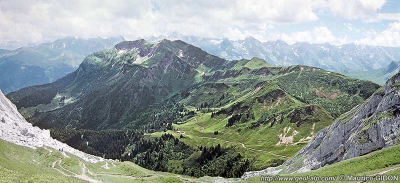 peu près NE-SW) qui forment symétriquement les chaînons du Bargy et de l'Aiguille Percée. Cela s'explique en considérant qu'il s'agit de plis "transportés"