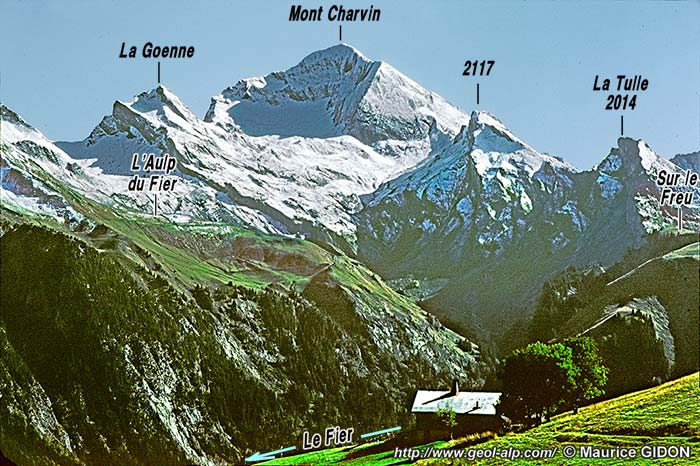 La faille de la Goenne effondre le compartiment Charvin - Goenne par rapport à celui situé plus au NE (Tête et chalets de l'Aulp du Fier) ; elle est doublée, en contre-bas par une faille satellite analogue, celle de Mandallaz, dont le tracé se connecte avec le sien en rive gauche du Fier. On peut constater là que ces cassures décalent aussi la surface de chevauchement du matériel ultrahelvétique et qu'elles ont donc joué (ou re-joué) après la mise en place de ce dernier.