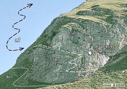 On voit, en divers points de la crête de La Tulle, que ces couches de la succession ultrahelvétique (et notamment sa barre tithonique), dessinent des plis couchés dont les charnières s'ouvrent vers l'est. Il s'agit en fait de plis dont les têtes anticlinales plongent vers le nord-ouest. Ils appartiennent à un système de plis originellement déversés vers l'ouest, qui ont été transportés (peut-être même créés) lors du charriage du matériel ultrahelvétique, puis basculés lors de la formation du synclinal de Serraval. (voir le schéma explicatif).