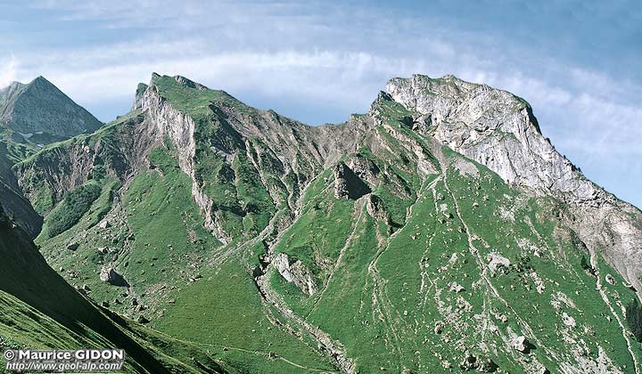 calcaires nummulitiques forme une puissante dalle structurale qui culmine à cet épaulement et tombe sur le col des Porthets.