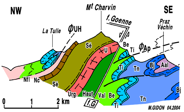 ØUH = surface de chevauchement des unités ultra-helvétiques ; ØAp = chevauchement de l'Arpettaz