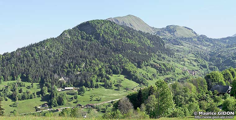 l'érosion) ; les affleurements de ce matériel sont limités à la partie haute de la montagne de Sulens, qui est une klippe tout-à-fait typique reposant en chapeau sur le matériel ultrahelvétique.