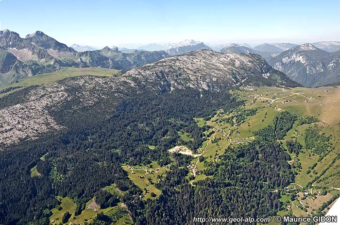 À l'ouest de Cluses les pentes de la rive gauche de la vallée de l'Arve s'abaissent en direction du NE, depuis les crêtes qui dominent la rive droite de la vallée du Borne en aval du Petit Bornand. À l'opposé de ces dernières elles sont douces et garnies d'alpages et de bois, car globalement formées par des surfaces structurales de couches que l'érosion a plus ou moins bien dégagées.