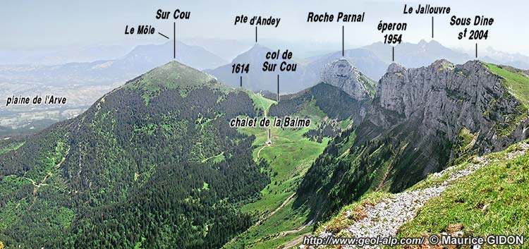 Au nord-est de la montagne de Sous-Dine la carapace urgonienne de l'anticlinal du Parmelan est crevée par l'érosion, qui y a ouvert une ébauche de cirque, à fond d'alpages, entourant les chalets de la Balme. Les eaux qui s'y rassemblent sont drainées vers le NW par le torrent du Flan qui rejoint très vite le domaine des molasses périalpines (environs du village d'Orange) sans rencontrer d'obstacle.