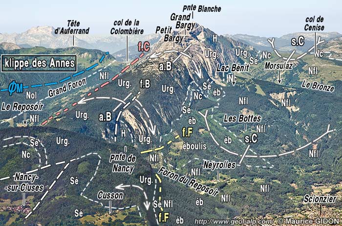 Avant d'atteindre cette vallée ce pli est entaillé transversalement par la cluse du Foron du Reposoir, qui montre que le beau rouleau dessiné par ce pli y subit quelques complications de détails :